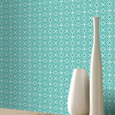 The Rasch Geometric Teal/ White Wallpaper is an easy way to add a dash of colour to your walls. This striking wallpaper is sure to make a welcome addition to your home. Featuring a modern interpretation of a retro inspired design with a fun geometric print in a teal and white colour scheme for a truly mesmerising wallpaper.