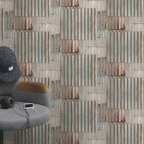 Bring a modern feel to your home with this amazing corrugated metal effect wallpaper from Rasch. This design features a rustic sheet metal effect print in grey tones throughout, finished on a smooth wallpaper for a truly mesmerising wallcovering.