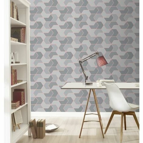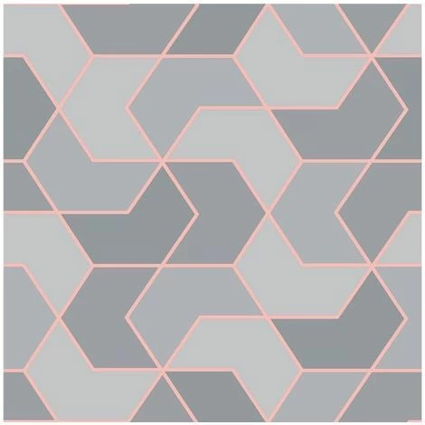 The Rasch Geometric Hexagon Wallpaper in Grey/ Rose Gold is an easy way to add a dash of colour to your walls. This striking wallpaper is sure to make a welcome addition to your home. features a stunning geometric design with a subtle metallic sheen, alternating coloured chevrons make up the pattern for a truly mesmerising wallpaper