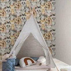Animal Faces Wallpaper Rasch Kids Bedroom Neutral Grey Paste The Wall