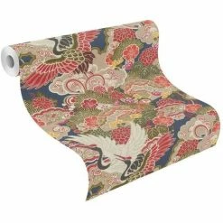 RASCH Oriental Floral Kimono Themed Wallpaper Textured Vinyl Paste The Wall