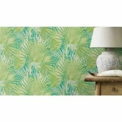 RASCH Palm Tree Inspired Wallpaper Exotic Tropical Vinyl Teal Green Floral Flowers