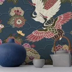 RASCH Oriental Wallpaper Chinese Garden Textured Heavy Duty Vinyl Feature Wall Navy
