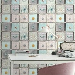 Retro Geometric Wallpaper Rasch Paste The Wall Vinyl Textured Grey Red Cream