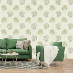 Green Textured Tree Wallpaper Rasch Paste The Wall Vinyl White Traditional