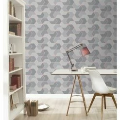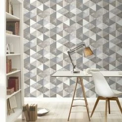 Grey Geometric Wallpaper Rasch Wood Effect Modern Contemporary