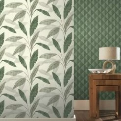 Green Banana Palm Leaf Wallpaper Rasch Paste The Wall Vinyl Textured Silver