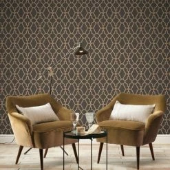 Rasch Casablanca Trellis Black Copper Vinyl Textured Wallpaper