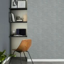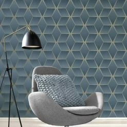 Rasch Geometric Curves Blue Silver Metallic Glitter Textured Vinyl Wallpaper