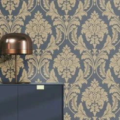 Rasch Glam Shimmering Damask Textured Wallpaper (10m X 53cm) (Beige)