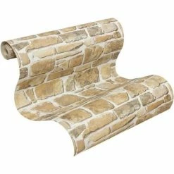 Rasch Brick Wall Pattern Faux Effect Realistic Mural Textured Vinyl Wallpaper (Beige 265606)