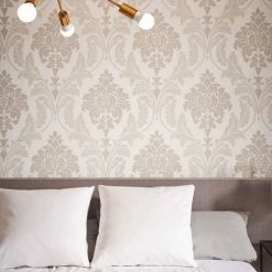 Rasch Glam Shimmering Damask Textured Wallpaper (10m X 53cm) (Beige)