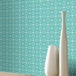 3D Effect Geometric Wallpaper Teal White Retro Diamonds Squares Modern Rasch