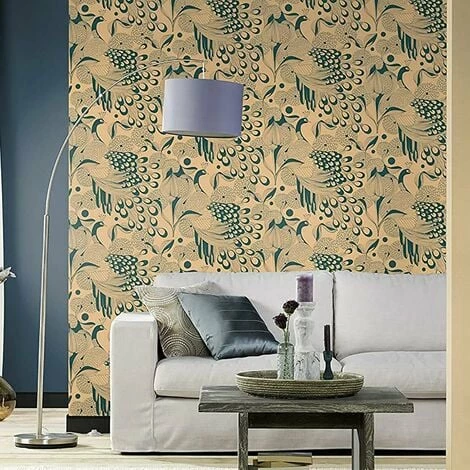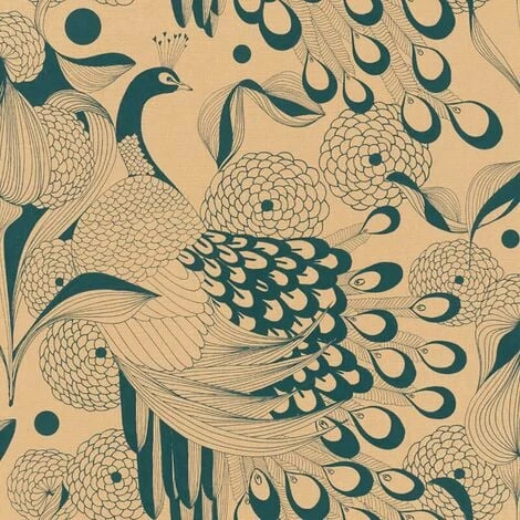 This amazing Proud Peacock wallpaper from Studio Onszelf is sure way to add a touch nature and style to your walls. Features a beautiful peacock print throughout in gold tones, set on a dark teal textured vinyl for a truly mesmerising wallpaper.