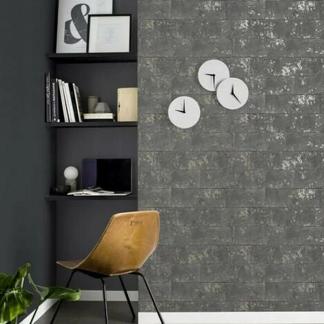Design: Brick, Metallic. Design Repeat: 53cm. Easy Application, Paste the Paper, Straight Pattern Match. Finish: Smooth.