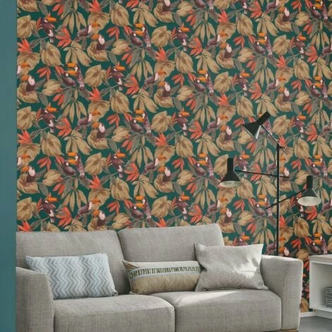 Design: Toucan, Tropical. Design Repeat: 32cm. Easy Application, Easy To Remove, Offset Pattern Match, Paste the Wall, Peelable.