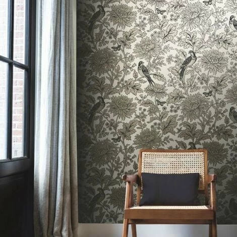 Material: Paper. Design: Birds, Butterflies, Floral, Leaves. Design Repeat: 21in. Easy Application, Paste the Paper, Straight Pattern Match. Finish: Matte, Metallic, Textured.