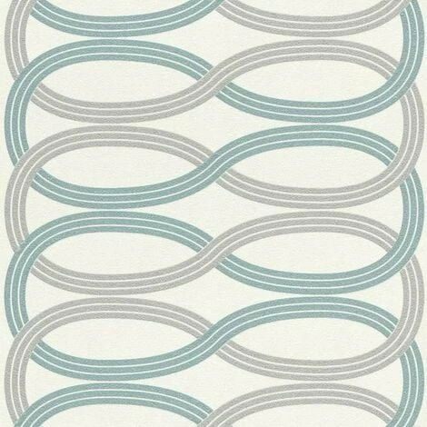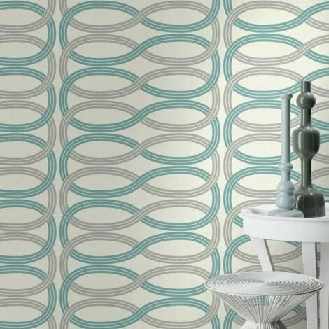 Art Deco Wallpaper Rasch Paste The Wall Textured Vinyl Teal Silver Glitter