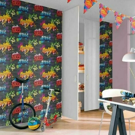 Design: Brick, Graffiti. Design Repeat: 53cm. Easy Application, Good Lightfastness.