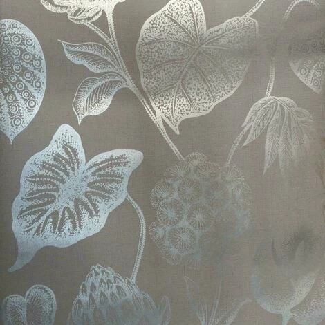 Rasch Havanna Taupe Wallpaper 270418 A taupe wallpaper with large metallic floral motifs Luxury thick quality wallpaper Smooth, flat finish Paste the paper Straight match Pattern repeat: 53cm Extra washable Wet removable Good lightfastness Roll size: 10m x 0.53m Coverage per roll: 5.32sqm approx All rolls ordered together will be the same batch number