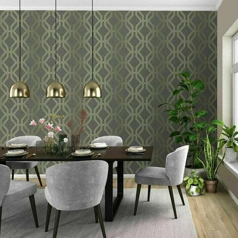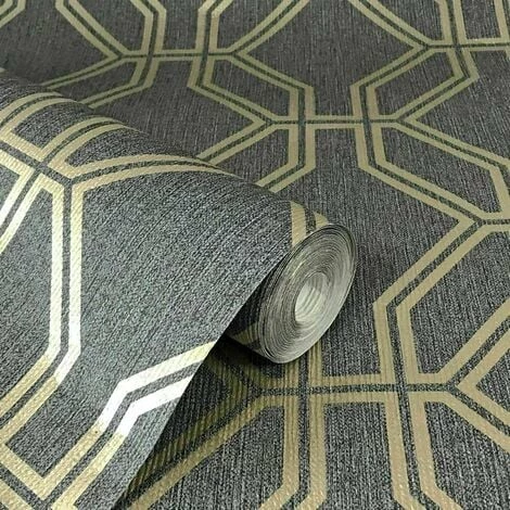 Rasch Black Gold Trellis WallpaperA high quality wallpaper featuring a metallic gold geometric trellis design on a charcoal black backgroundPerfect as a feature wall or a whole room coveringEasy to apply – paste the paperStraight match – Pattern repeat: 53cmWashable, Strippable, Good LightfastnessEach roll measures 10m x 0.53m with a coverage of 5.32sqm approx per rollAll rolls ordered together will be the same batch number