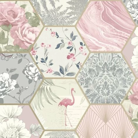 Design: Art Deco, Flamingo, Floral, Hexagon, Marble, Metallic, Patchwork. Design Repeat: 53cm. Easy Application, Offset Pattern Match, Paste the Paper. Finish: Smooth.