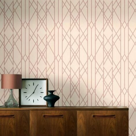 Design: Geometric Line, Lattice. Design Repeat: 53cm. Finish: Copper Effect, Matte, Metallic, Smooth. Easy Application, Paste the Paper, Straight Pattern Match.