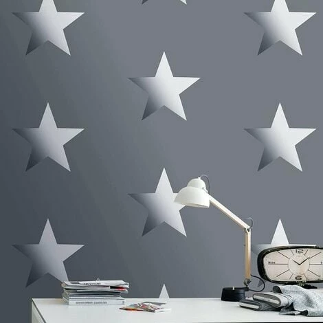 This Metallic Stars Wallpaper will add a stylish finishing touch to your home. The design features an eye-catching large metallic star motif in a repeated pattern, set on a beautiful background with a smooth finish and a metallic sheen. Easy to apply, this high quality wallpaper would look fantastic when used to decorate a whole room or to create a stunning feature wall. Stylish star themed wallpaper Features a metallic finish Ideal for bedrooms or nurseries 10.05m (32.10ft) long x 53cm (21in) wide 53cm pattern repeat Free match pattern Star width approx 33cm (13in) Easy to apply Washable Paste the paper wallpaper