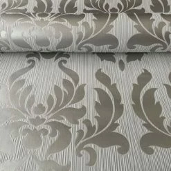 Design: Damask. Design Repeat: 32cm. Easy Application, Offset Pattern Match, Paste the Wall. Finish: Matte, Metallic, Textured.