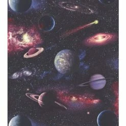 The Rasch Out of This World Planets Purple Multi Wallpaper has been specifically designed to add a touch of magic to a child’s or teen’ space. This magnificent design is from the Rasch Kids N Teens III Collection and would be the perfect fit for a space themed room. The wallpaper features a realistic, mesmerising space scene in a dazzling purple multi colour scheme. Use the Rasch Out of This World Planets Purple Multi Wallpaper throughout a room for a magical effect or mix and match with complementing designs from the Rasch Kids N Teens III Collection.. Adhesive Usage Per Roll: 1kg (On Average) Pattern Repeat / Match: 29.5cm, Offset Wallpaper Type: Non Woven Wallpaper Finish: Flat Durability: Washable Application: Paste the Wall or Paste the Paper / Check roll Direction before Hanging Roll Size: 10m x 53cm Wide Roll Coverage: 5.3 Square Metres Batch Numbers: Same Batch per Order