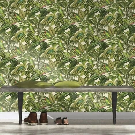 The Freundin Tropical Parrots Green Wallpaper is a great way to liven up any space. This exciting wallpaper is part of the exciting Home Wallpaper Collection Vol 2 and is sure to make a welcome addition to any room. The wallpaper has a tropical inspired feel and is brought to life with a large design incorporating lush vegetation and parrots. The wallpaper has an authentic green colour scheme with flecks of colour for a great look. The Freundin Tropical Parrots Green Wallpaper is perfect for a feature wall and works especially well in a living room or dining area. Team with coordinating plain designs from the same collection to complete the look. Adhesive Usage Per Roll: 1kg (On Average) Pattern Repeat / Match: 30cm, Offset Wallpaper Type: Non Woven Wallpaper Finish: Lightly Textured Durability: Washable Application: Paste the Wall or Paste the Paper / Check roll Direction before Hanging Roll Size: 10m x 53cm Wide Roll Coverage: 5.3 Square Metres Batch Numbers: Same Batch per Order