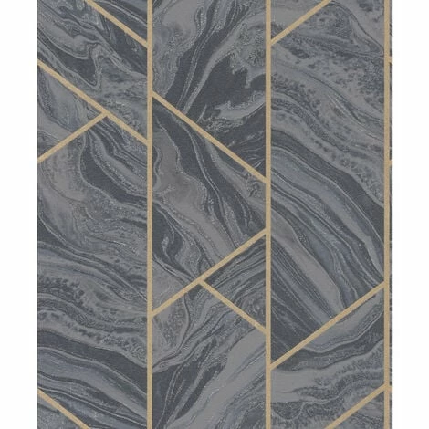 This stunning Marble Geometric Glitter Wallpaper will make a bold statement in your home. The stylish design features a contemporary geometric pattern made up of abstract angular segments with a soft metallic gold outline, patterned with marble swirls in dark grey tones with glitter highlights!