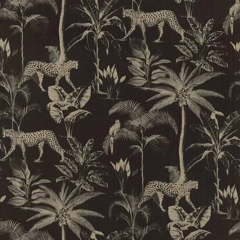 The Rasch Savannah Leopard Palm Tree Jungle Wallpaper in black and gold is destined to bring a stunning, fresh elegance to your home. This beautiful design from the Rasch Pandore Collection vows to add lavish style to your walls. The jungle inspired design features leopards amongst intricately detailed palm trees. This version comes in a luxurious black and gold colour palette for an extra touch of class. The Rasch Savannah Leopard Palm Tree Jungle Wallpaper in black and gold can be used to make the perfect feature wall or throughout a room. Add gold accessories to perfectly finish this look. Adhesive Usage Per Roll: 1kg (On Average) Pattern Repeat / Match: 53cm, Straight Wallpaper Type: Non Woven Wallpaper Finish: Lightly Textured Durability: Washable Application: Paste the Wall or Paste the Paper / Check roll Direction before Hanging Roll Size: 10m x 53cm Wide Roll Coverage: 5.3 Square Metres Batch Numbers: Same Batch per Order