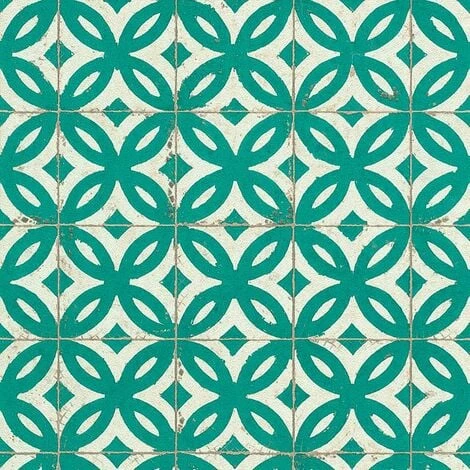 Transform your living space with this amazing tile wallpaper from Rasch. Features a stunning tile effect print throughout, finished in a teal and white colourway for a truly mesmerising wallpaper.