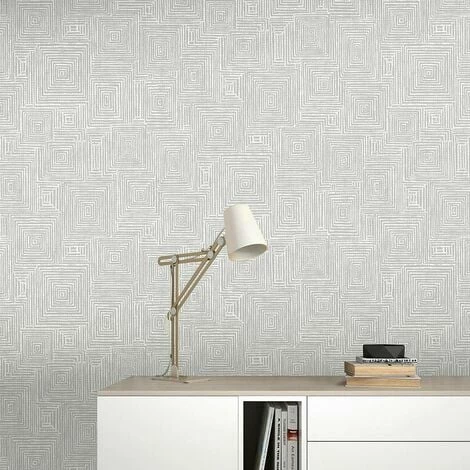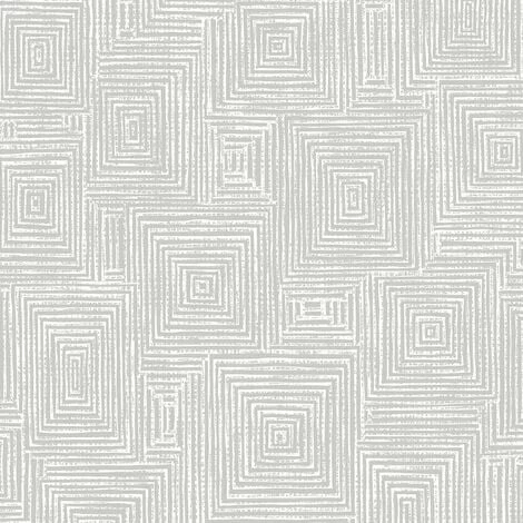 Bring a modern feel to your home with this stunning geometric wallpaper from Rasch. This design features a brilliant geometric square print with metallic detail throughout in white and silver tones, set on a textured vinyl for a truly contemporary wallcovering.